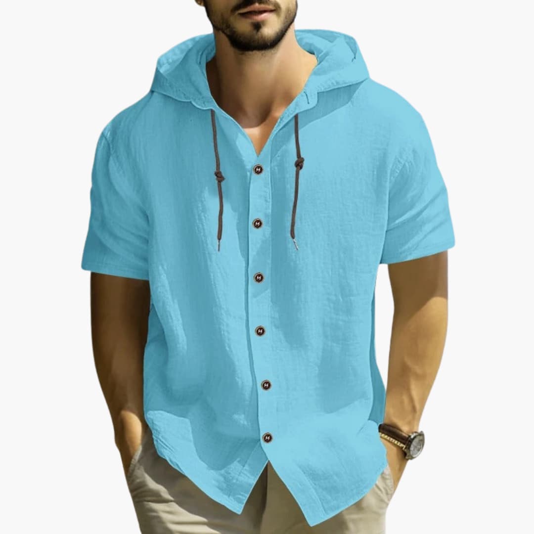 Herren Kapuzen Sommerhemd mit kurzen Ärmeln und Knopfleiste