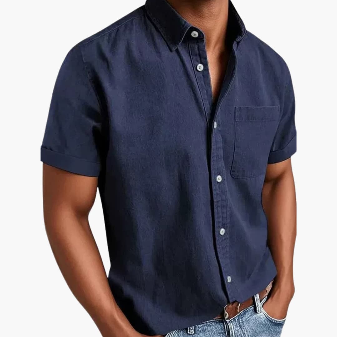 Herren-Freizeithemd aus leichtem, atmungsaktivem Gewebe für Frühling und Sommer. Mit körperbetontem Schnitt, kurzen Ärmeln, Kentkragen und durchgehender Knopfleiste. Eine Brusttasche ergänzt die funktionale Gestaltung. Geeignet für Freizeit, Büro oder smarte Alltagslooks mit Jeans, Chino oder Shorts.