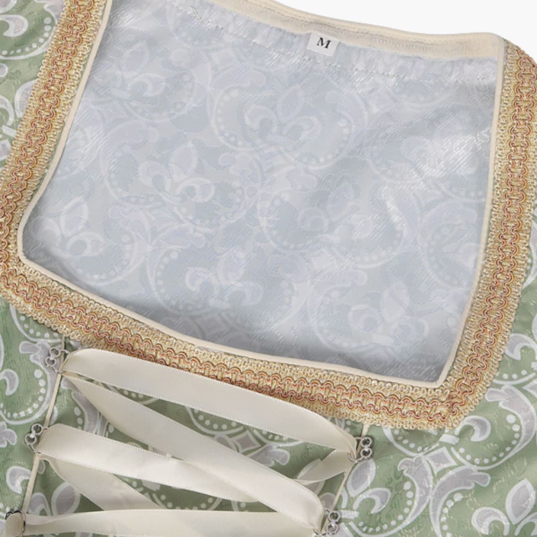 • Spitzenverzierter Miedereinsatz: Traditioneller Schnürverschluss im Korsettstil mit feinen Spitzen-Details.